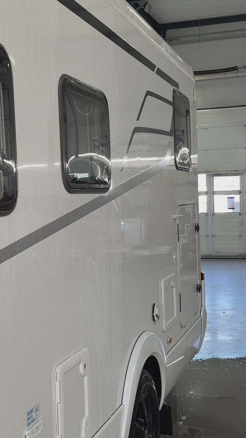 - After the entire camper or caravan has been washed, rinse it with water and you will immediately see the hydrophobic effect